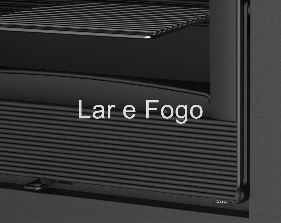Estufa de leña con turbinas y leñero.
